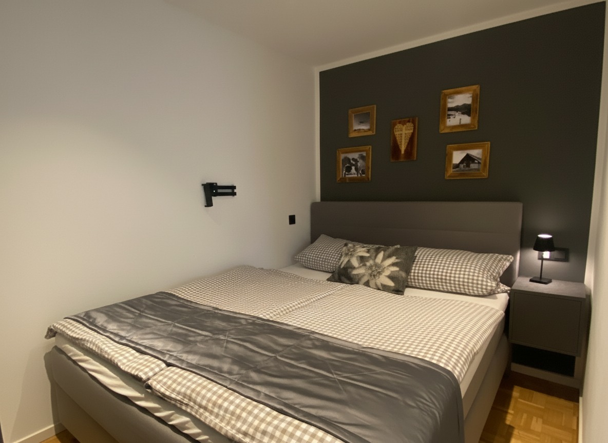 Unsere Ferienwohnung wurde mit viel Liebe zum Detail eingerichtet, um Ihnen höchsten Komfort zu gewährleisten. Es erwartet Sie eine moderne, voll ausgestattete Küche, ein gemütlicher Wohnbereich sowie eine private Terrasse mit atemberaubendem Bergblick. Die stilvolle Einrichtung macht unsere Ferienwohnung in den Bergen zu einem wahren Juwel. Direkt vor der Haustür steht Ihnen ein eigener Parkplatz zur Verfügung, was die An- und Abreise besonders bequem gestaltet.